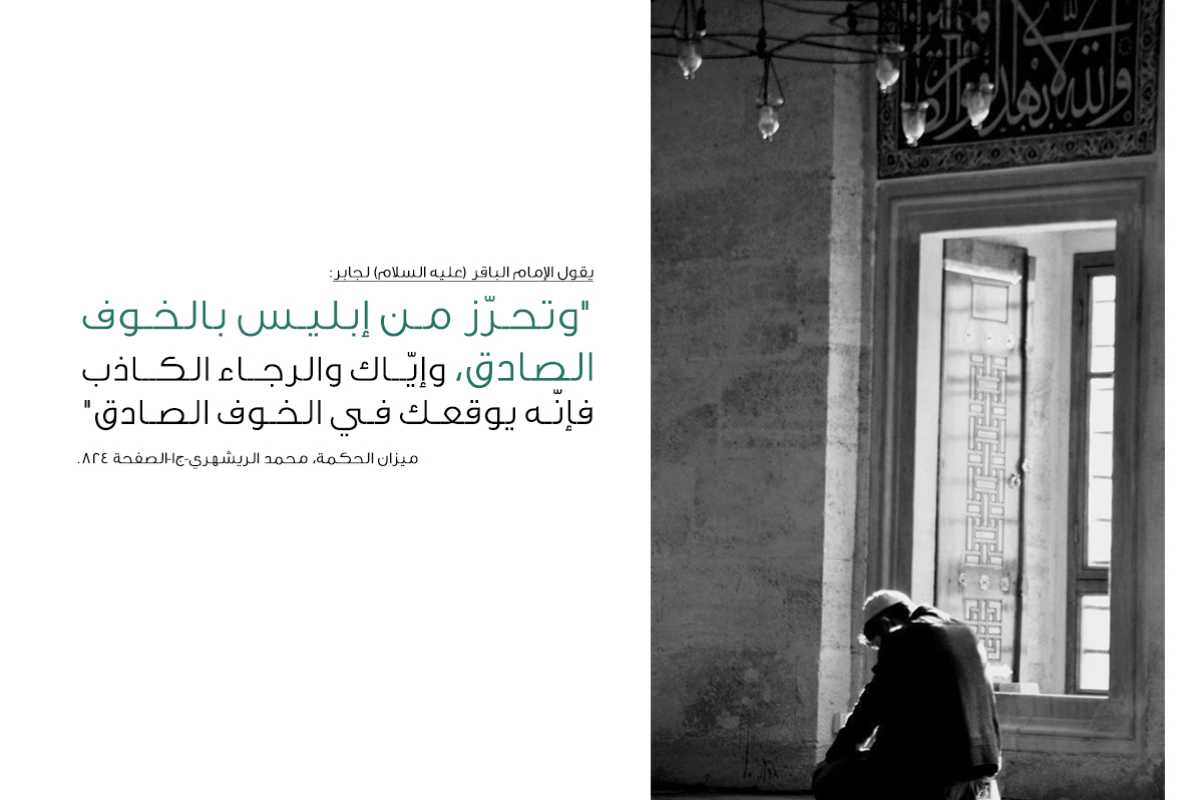 وقوله عليه السلام عن رسول الله صلى الله عليه وآله وسلم: "عِشْرُونَ خَصْلَةً فِي الْمُؤْمِنِ فَإِنْ لَمْ تَكُنْ فِيه لَمْ يَكْمُلْ إِيمَانُه، إِنَّ مِنْ أَخْلَاقِ الْمُؤْمِنِينَ يَا عَلِيُّ: الْحَاضِرُونَ الصَّلَاةَ، والْمُسَارِعُونَ إِلَى الزَّكَاةِ، والْمُطْعِمُونَ الْمِسْكِينَ، الْمَاسِحُونَ رَأْسَ الْيَتِيمِ، الْمُطَهِّرُونَ أَطْمَارَهُمْ، الْمُتَّزِرُونَ عَلَى أَوْسَاطِهِمُ، الَّذِينَ إِنْ حَدَّثُوا لَمْ يَكْذِبُوا، وإِذَا وَعَدُوا لَمْ يُخْلِفُوا، وإِذَا ائْتُمِنُوا لَمْ يَخُونُوا، وإِذَا تَكَلَّمُوا صَدَقُوا، رُهْبَانٌ بِاللَّيْلِ أُسُدٌ بِالنَّهَارِ، صَائِمُونَ النَّهَارَ قَائِمُونَ اللَّيْلَ، لَا يُؤْذُونَ جَاراً ولَا يَتَأَذَّى بِهِمْ جَارٌ، الَّذِينَ مَشْيُهُمْ عَلَى الأَرْضِ هَوْنٌ، وخُطَاهُمْ إِلَى بُيُوتِ الأَرَامِلِ وعَلَى أَثَرِ الْجَنَائِزِ، جَعَلَنَا الله وإِيَّاكُمْ مِنَ الْمُتَّقِينَ"[6].