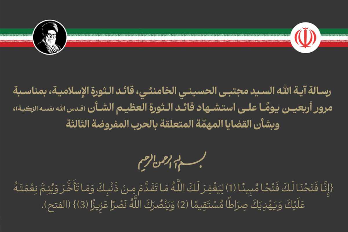 رسالة السيد مجتبى الخامنئي بمناسبة مرور أربعين يومًا على استشهاد الإمام السيد علي الخامنئي